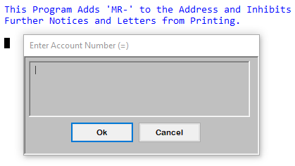 In the Enter Account Number window, type the account number, and press Enter or click Ok.