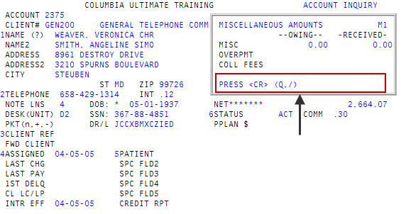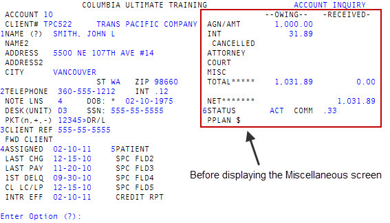 To close the Miscellaneous Amounts window, type Q, and press Enter.