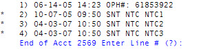 - At the End of Acct number Enter Line # (?) prompt, do one of the following: