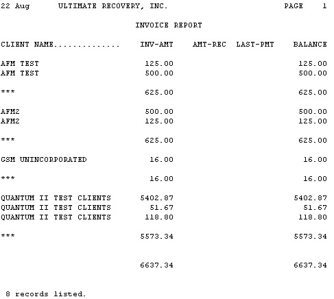 CU·Invoice generates invoices for payments collected on behalf of your clients and applies client payments against specific invoices. This report provides a list of all outstanding invoices for all CU·Invoice clients. If the preliminary Month-End has been run, a prompt appears asking whether to include the new month in the report totals.