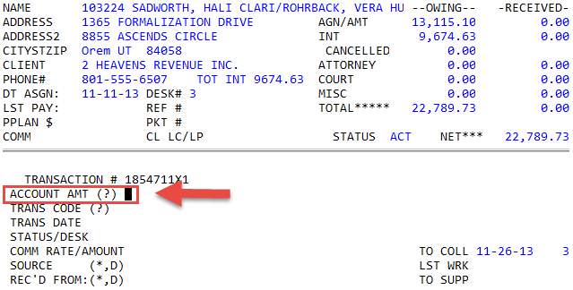 Assigned Amount window. The assigned amount (Agn/Amt field in the Owing and Received section of the screen) consists of several parts. Use this option to superimpose a window over the Owing and Received section showing the distribution of the assignment into up to 12 categories. For more information, see Viewing distribution windows. |