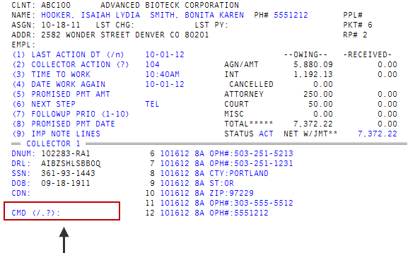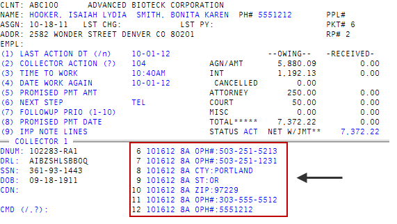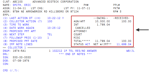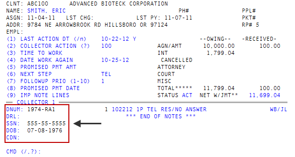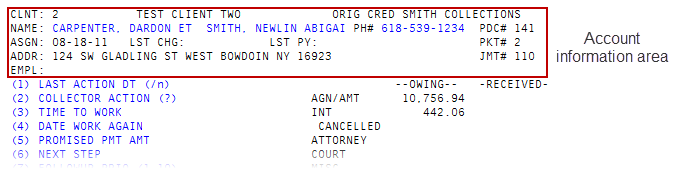 The account information area contains the most basic information about the person from whom you are trying to collect a debt.