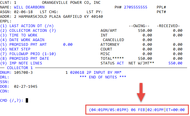 The Notes area allows you to view the seven most recent or important note lines on the Collector screen You can add or view notes using specific commands from the Command Prompt.
