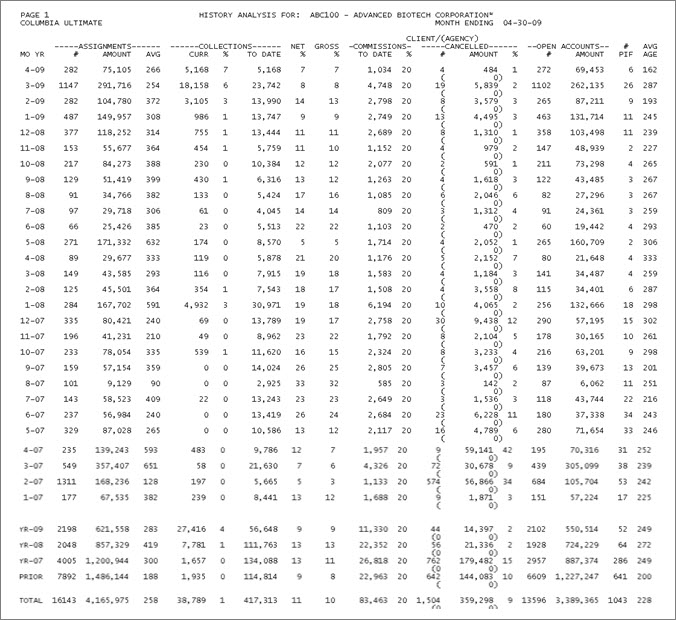 The month and year the accounts were assigned. The last 12 months of assignments are reported along with totals for the last three years. The "Prior" period contains any figures prior to the last three years. |
