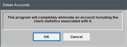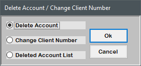 In the Delete Account / Change Client Number window, select Delete Account, and press Enter or click Ok.