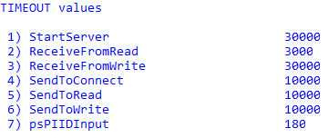 In the each field of the TIMEOUT values screen, type the number of seconds or milliseconds, and press Enter or click Ok.