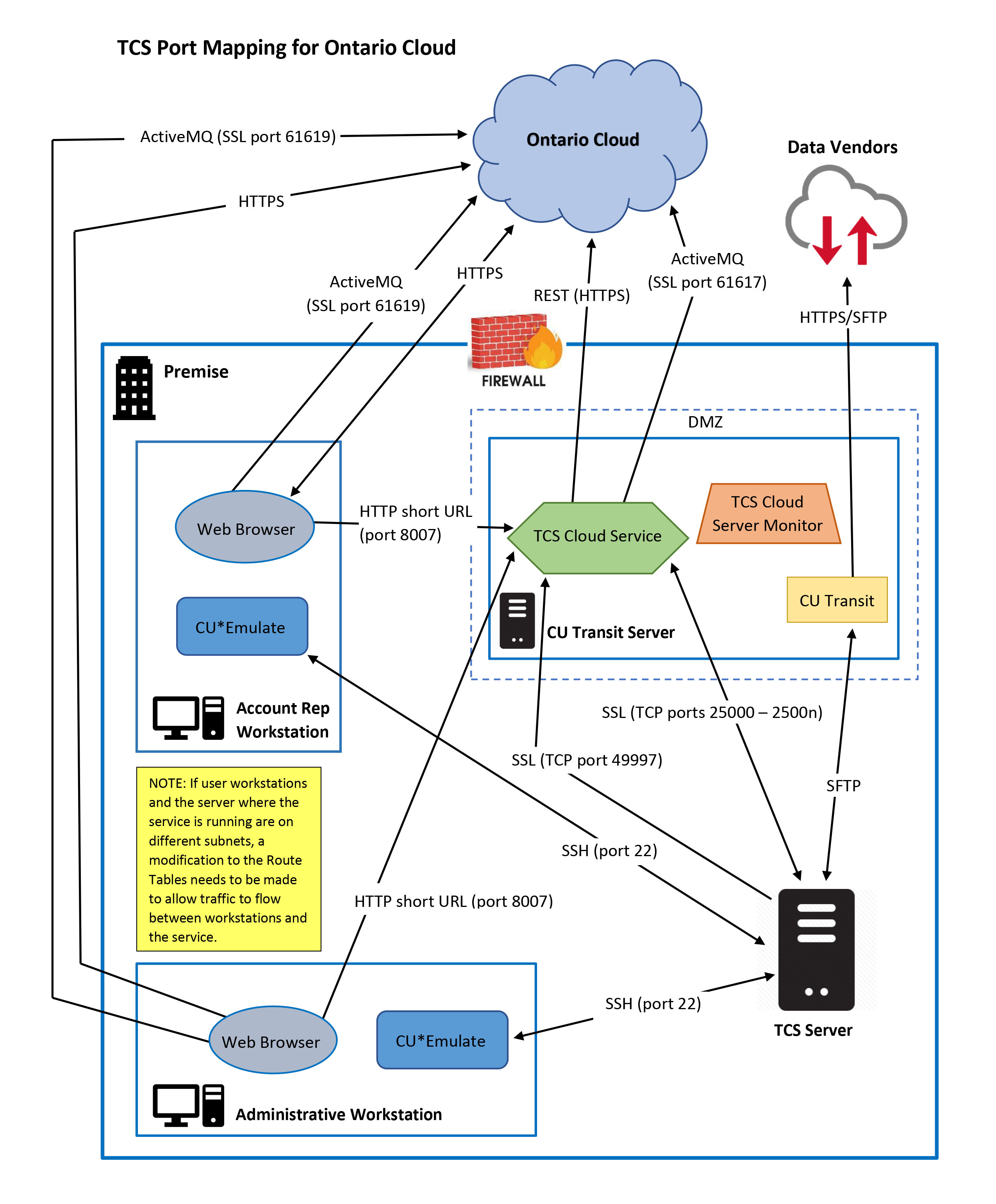 The diagram below shows the connections and ports used by The Collector System to connect to the Cloud.