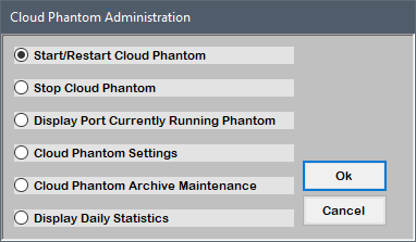 In the Cloud Phantom Administration window, select Display Port Currently Running Phantom, and press Enter or click Ok.