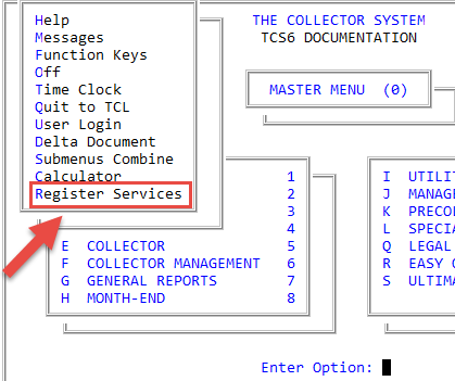 - In the Register Cloud Services window, select Payment Service, and press Enter or click Ok.